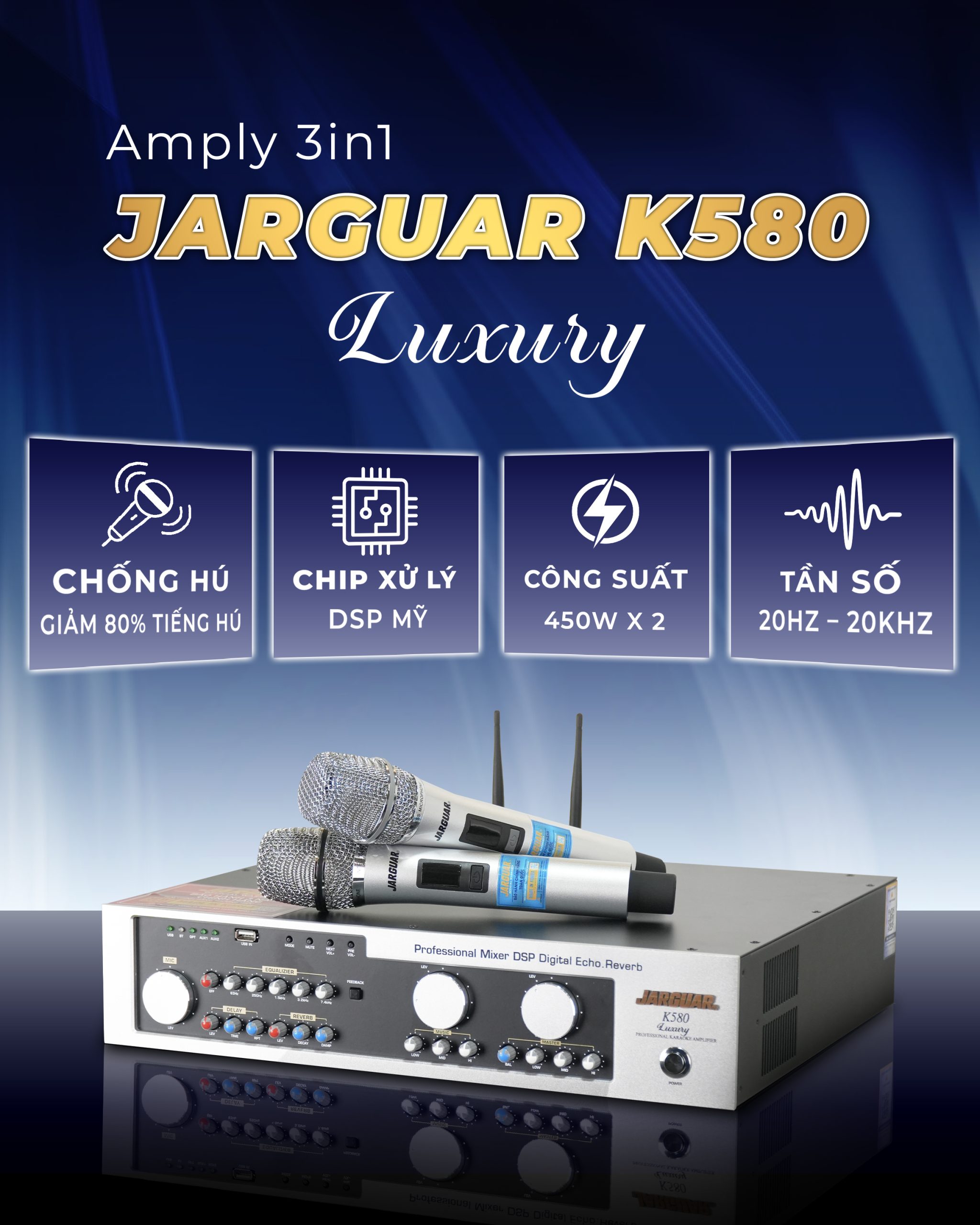 Amply Jarguar K580 Luxury không chỉ phá vỡ giới hạn – nó định nghĩa lại toàn bộ chuẩn mực của một chiếc amply.