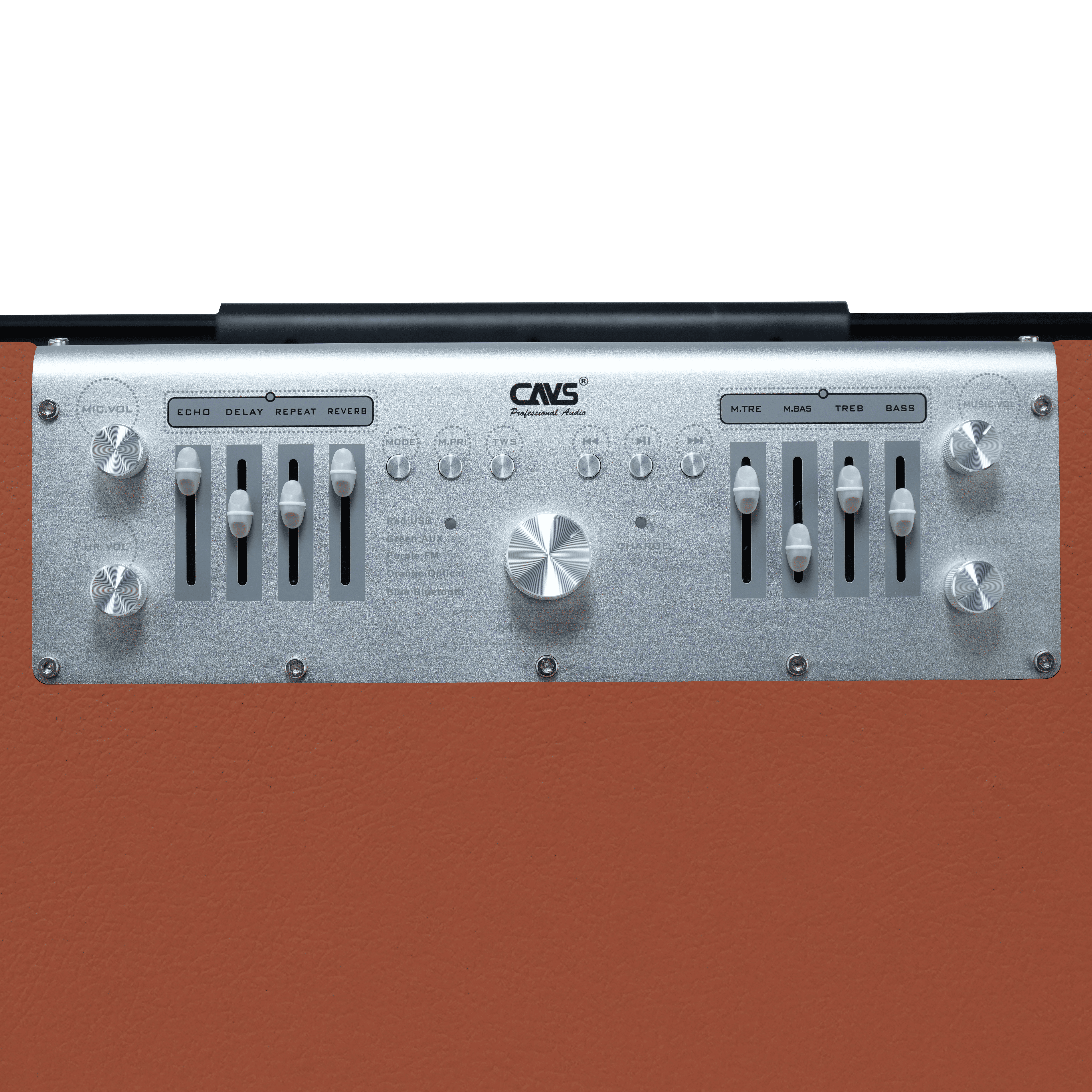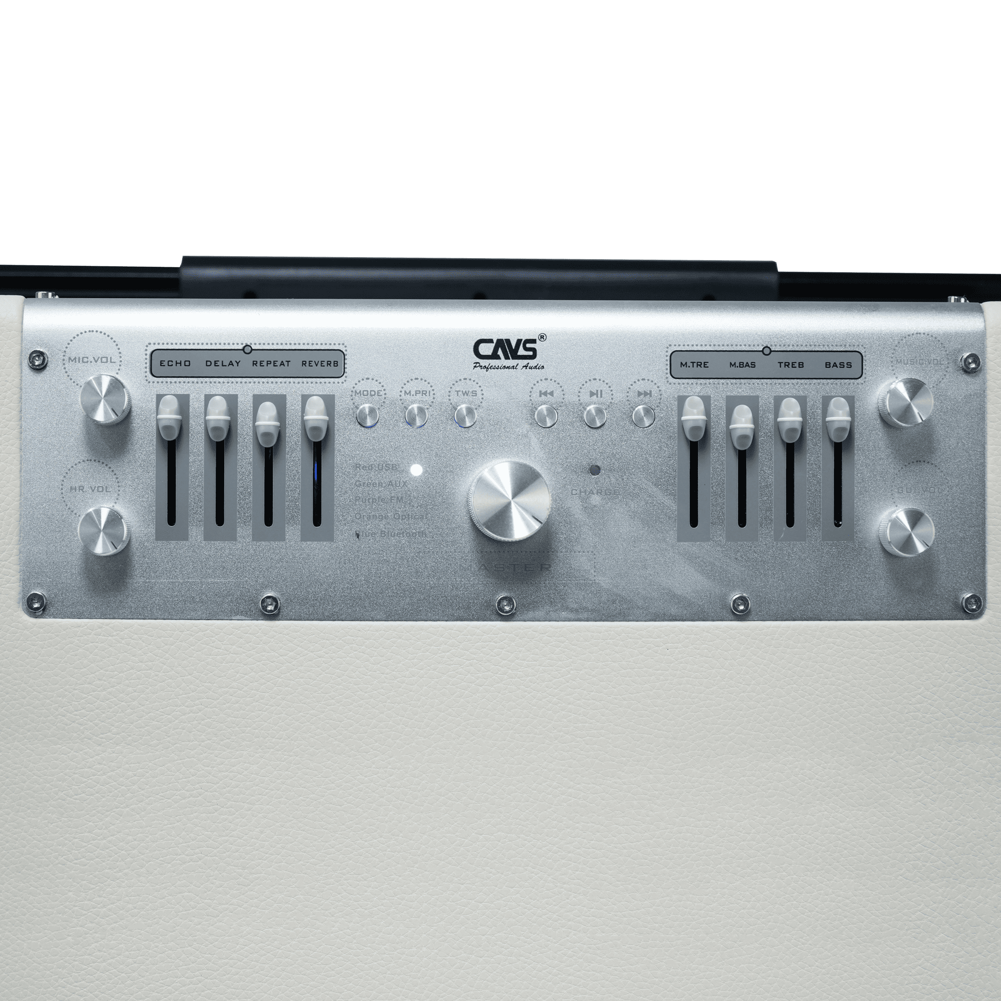 Khác biệt cốt lõi của loa xách tay CAVS LUNO LEGACY 2026 nằm ở hệ thống điều khiển dạng cần gạt (fader) thay cho núm xoay truyền thống.